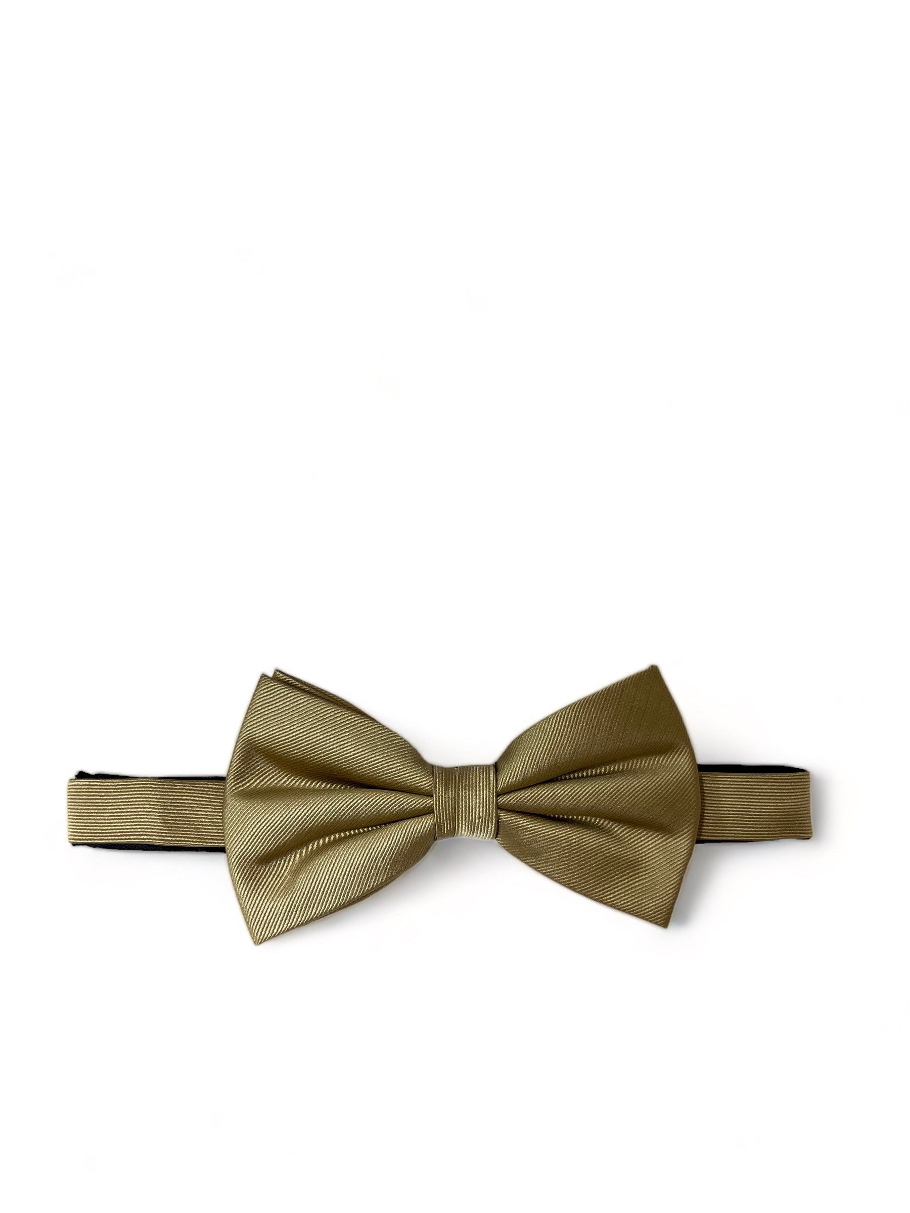 Solid Tan Bow Tie Hand Made of 100% Silk, Jacquard Woven, Size adjustable from neck size 14 through 18.5. Imported. The...