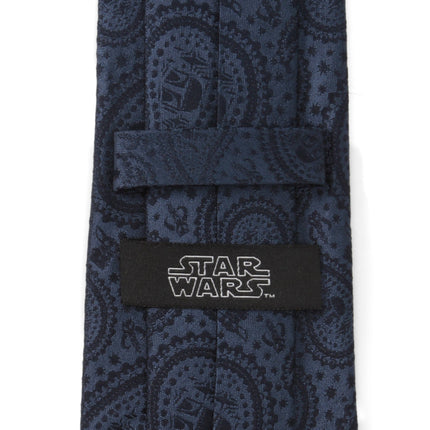 Look closely at this rich navy 100% silk tie and you'll spot a wealth of Mandalorian icons and figures nestled...