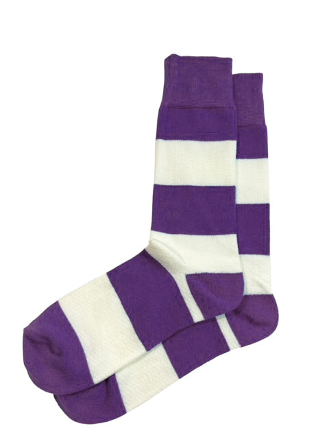 Lavender and White Striped Cotton Dress Socks By Paul Malone
