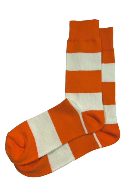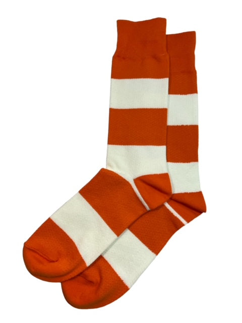 Go bold and take the risk by donning the Orange & White Striped Cotton Dress Socks from Paul Malone....