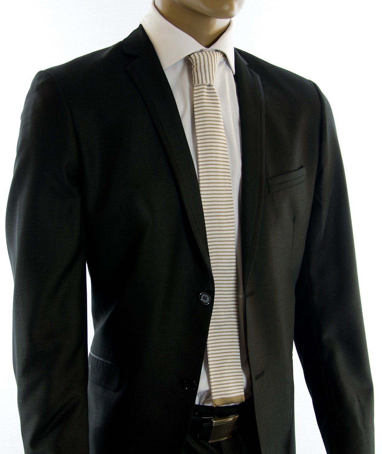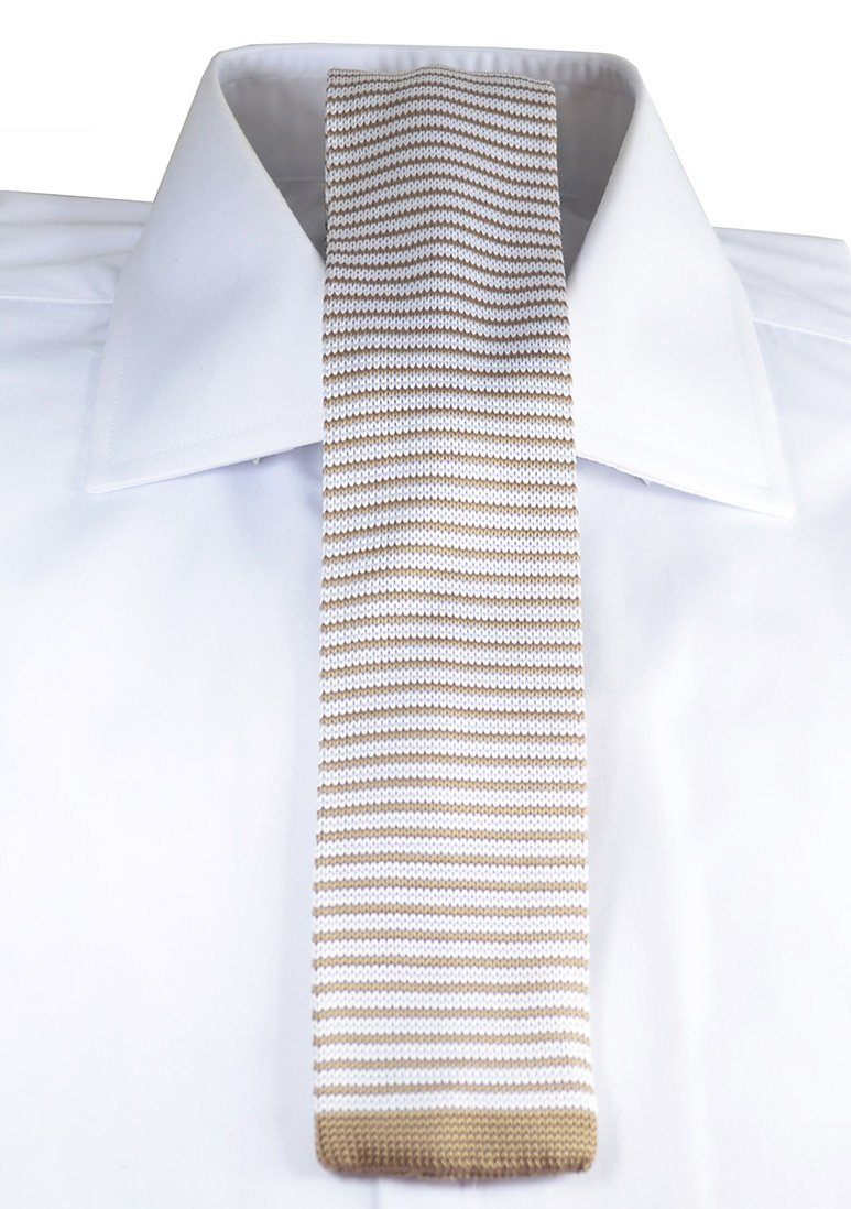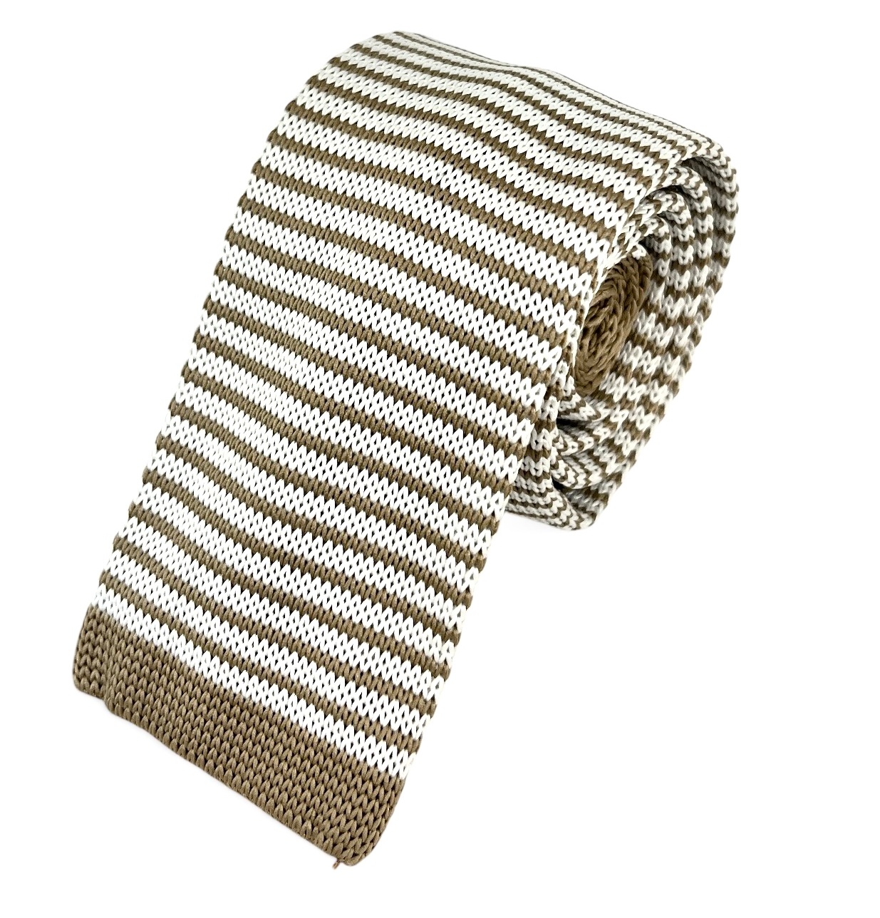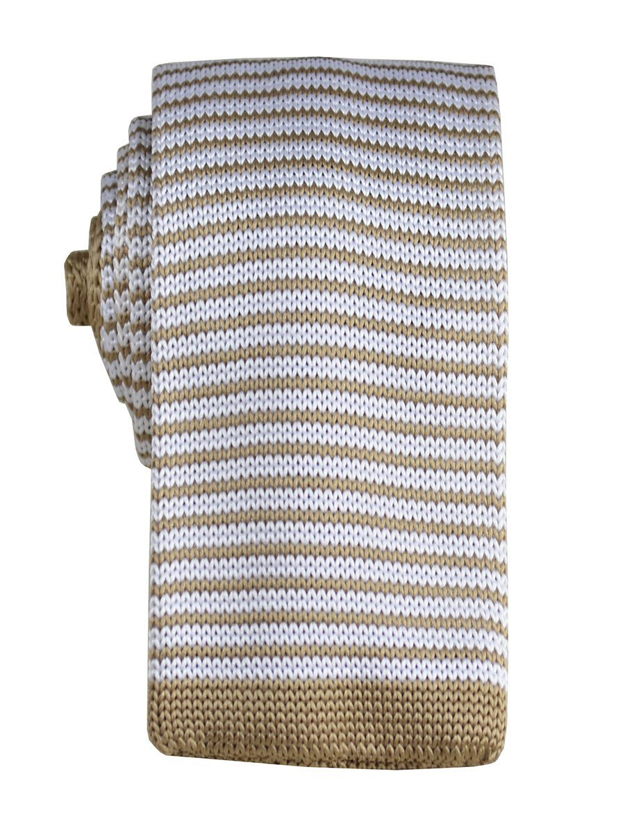 Elevate your style game with the Striped Tan and White Knit Tie by Paul Malone. Handmade and imported, this tie...