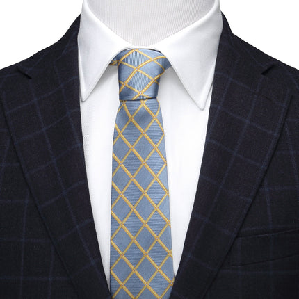 Ignore your first day jitters. You’re set up for success with this modern, gold-checked tie. It’s the perfect contrast to...