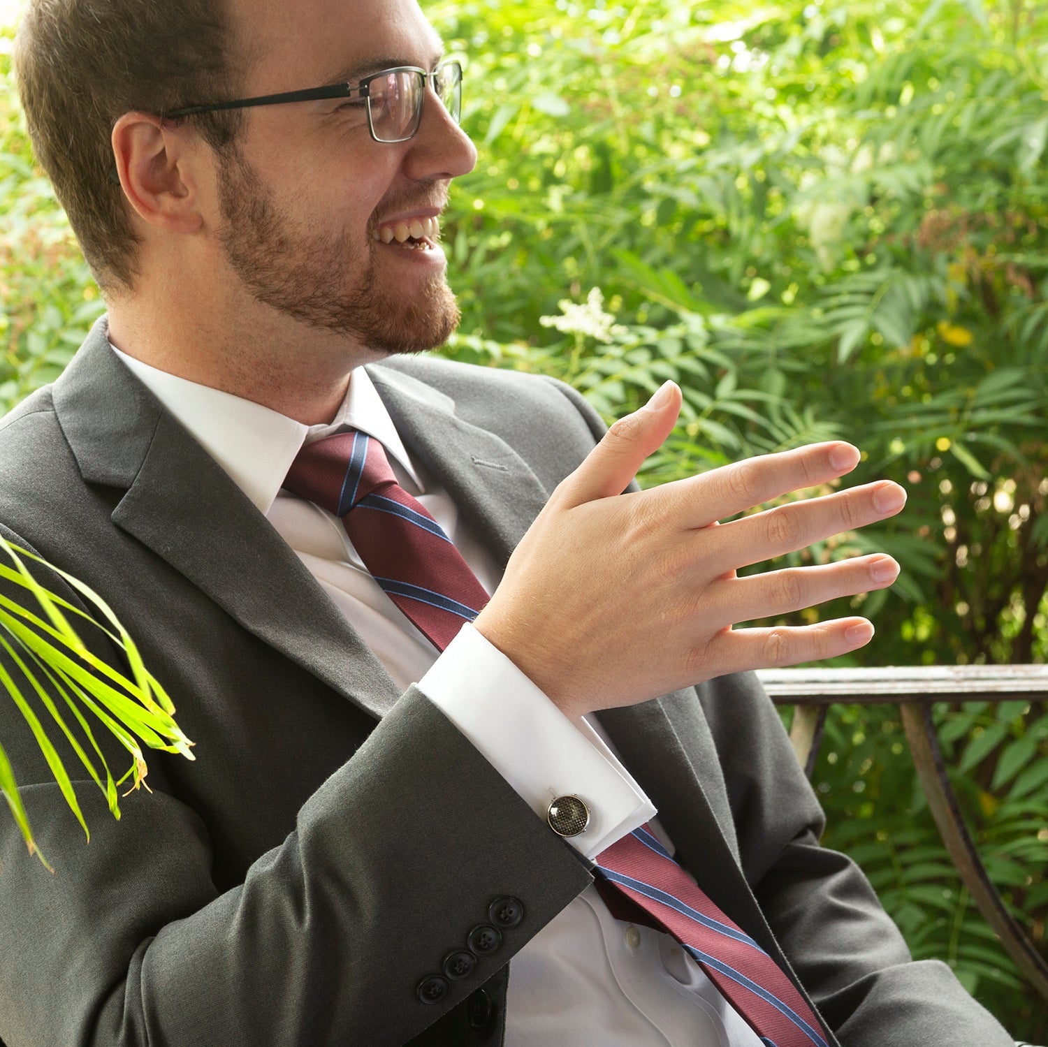 Let your personality shine through with this modern tie featuring a fun twist on an iconic stripe design. The navy...