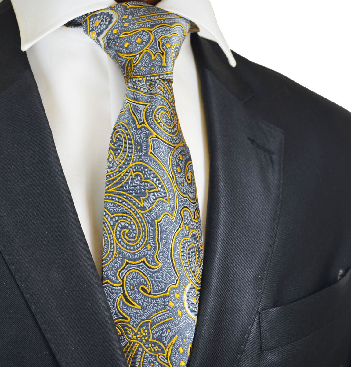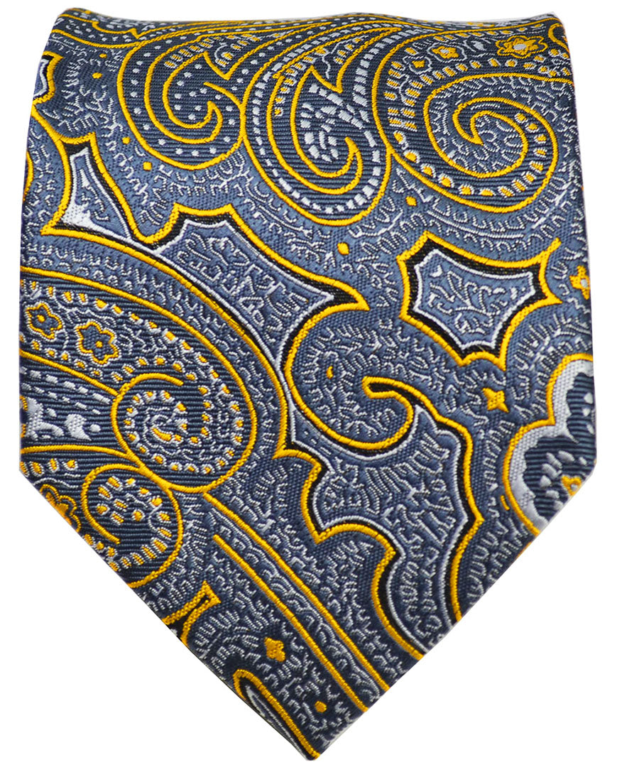 Elevate your style with the luxurious Paul Malone Gold on Silver Paisley Tie. Made from 100% microfiber and handcrafted with...