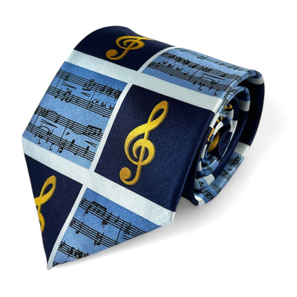 Blue and Navy Musical Notes Print Necktie and Pocket Square Set by Vittorio Farina. Made of 100% finest Microfiber. Imported.