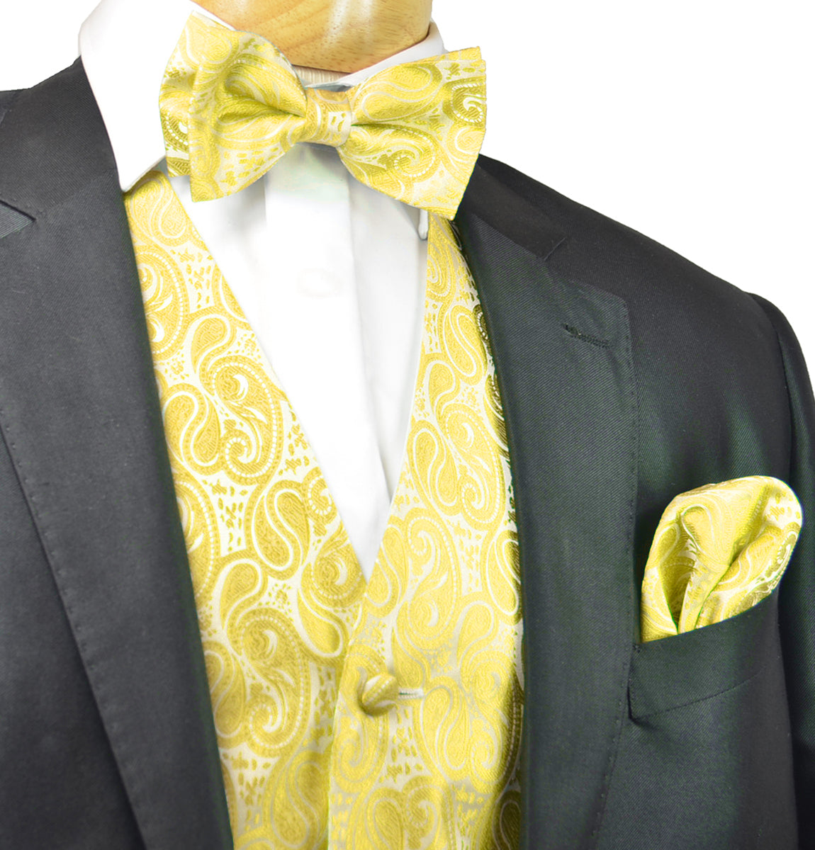 Formal Aspen Gold Paisley Tuxedo Vest Set with your choice of matching Necktie or Bow Tie and always with the...