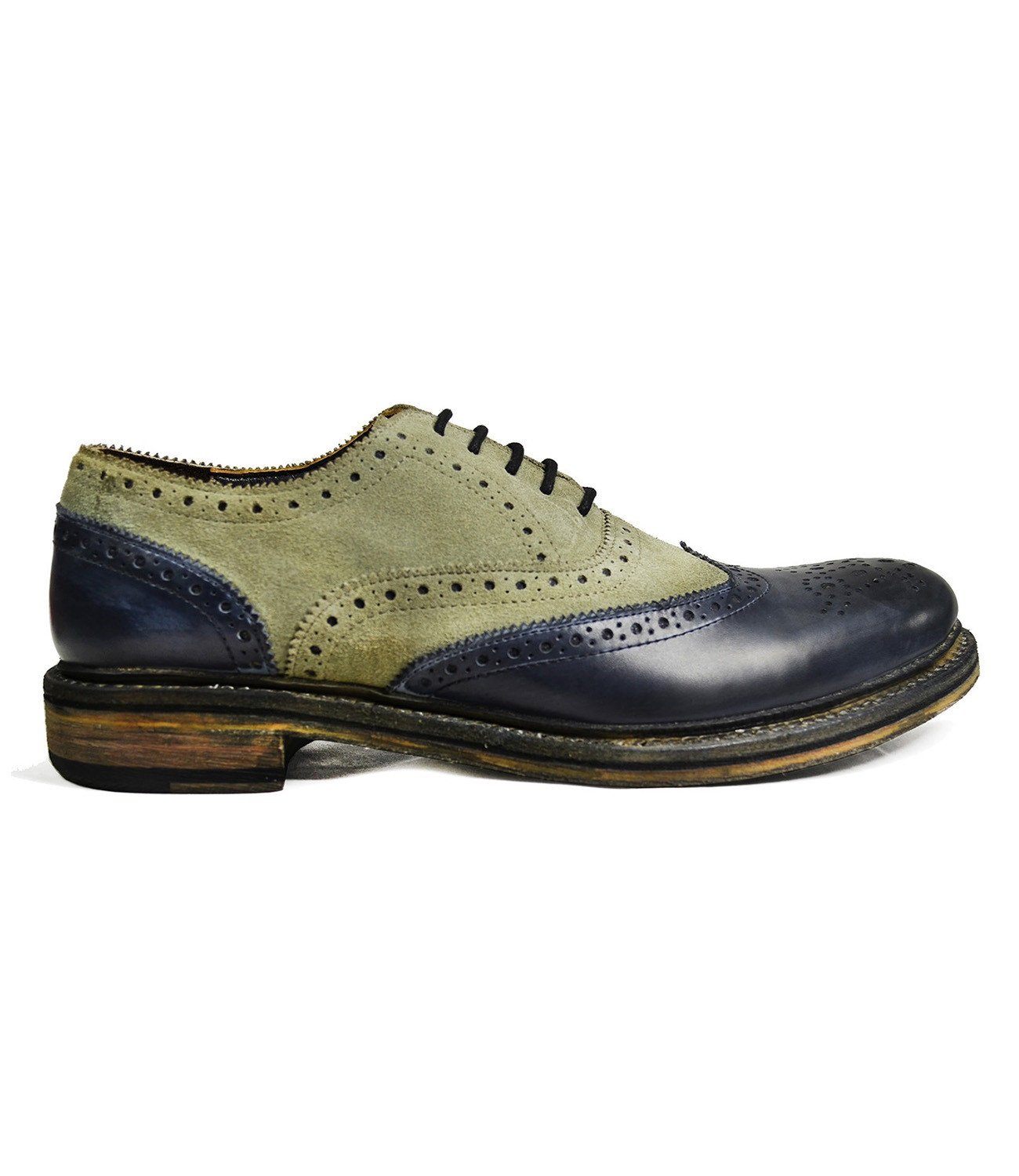 VERONA Full Leather Grey and Navy Wing Tip Oxfords