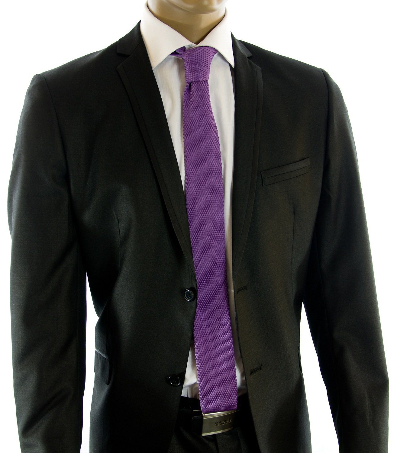 Introducing the Solid Violet Purple Modern Knit Tie by Paul Malone - a true masterpiece of craftsmanship. Imported and hand...