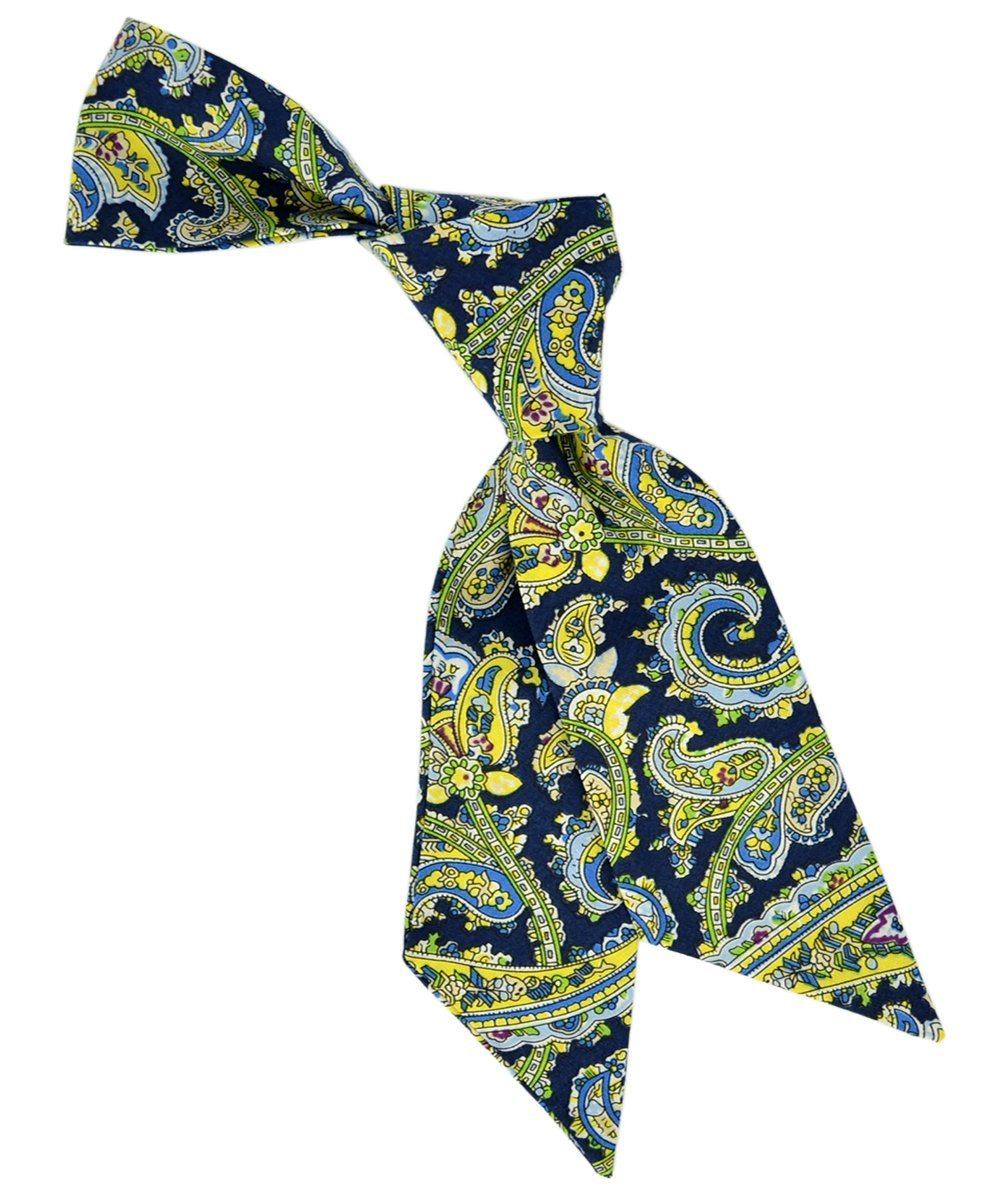 Navy, Green and Yellow Paisley Patterned Women's Sash. 100% Cotton Womens Tie for a new, trendy Look. Wear it in your...