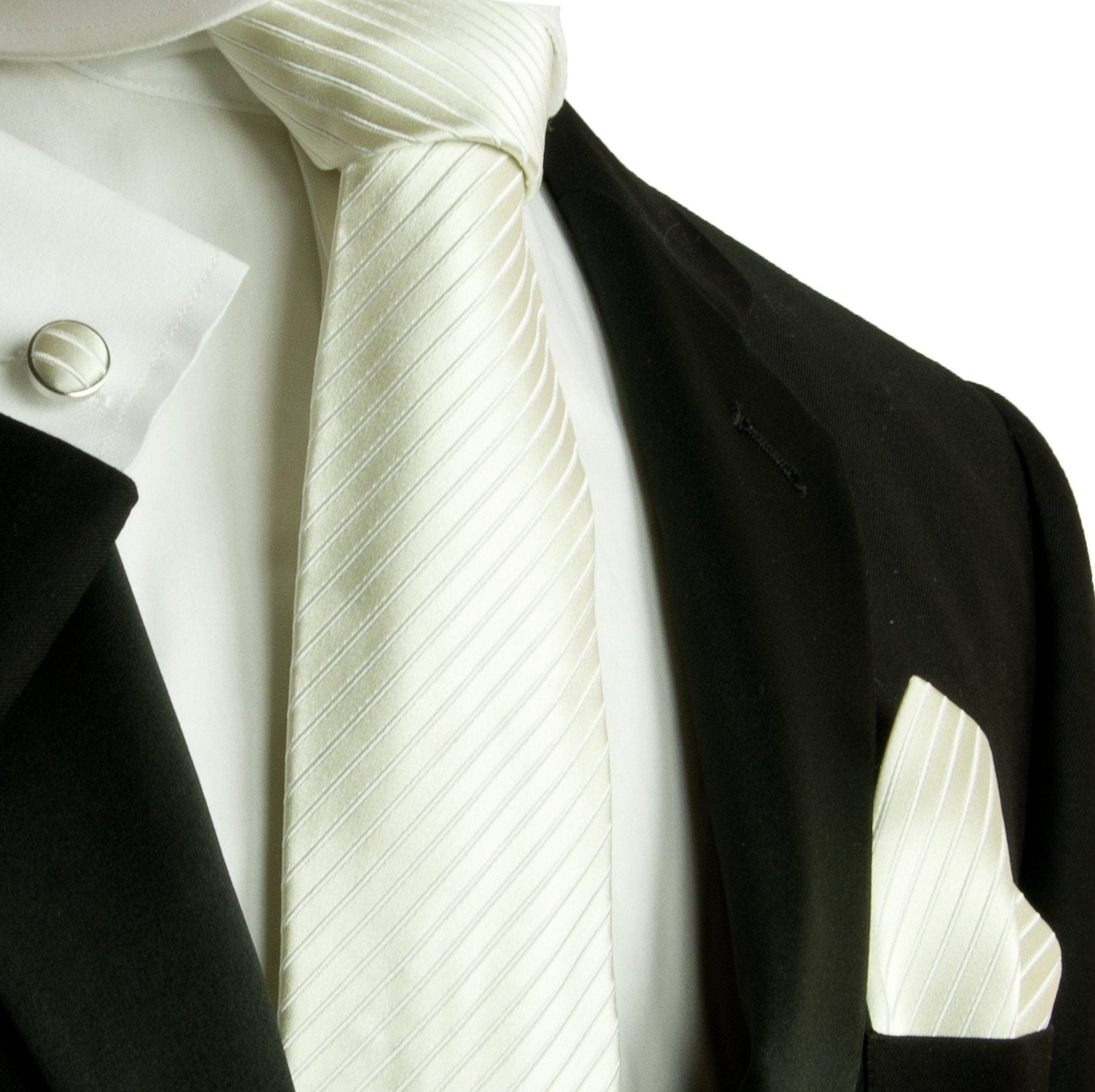 Classic White Paul Malone tie with matching pocket square and cufflinks. Made of 100% pure mulberry silk, hand made and...