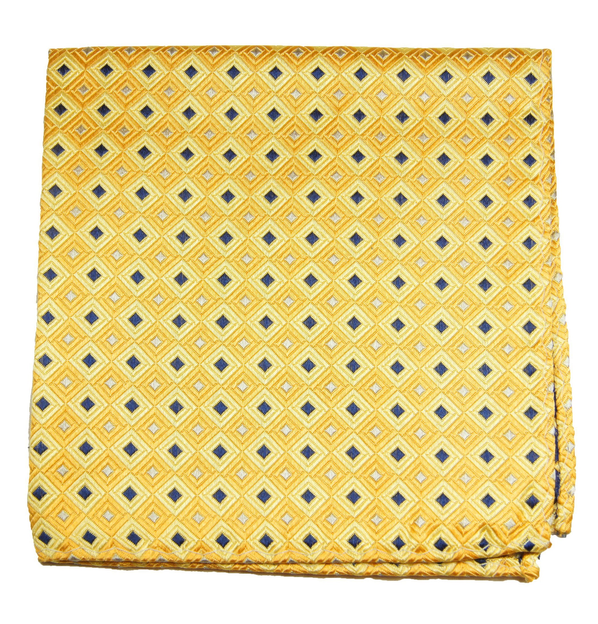 Experience the luxurious feel and exquisite design of our Yellow and Blue Patterned Silk Pocket Square, made from 100% pure...